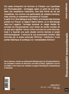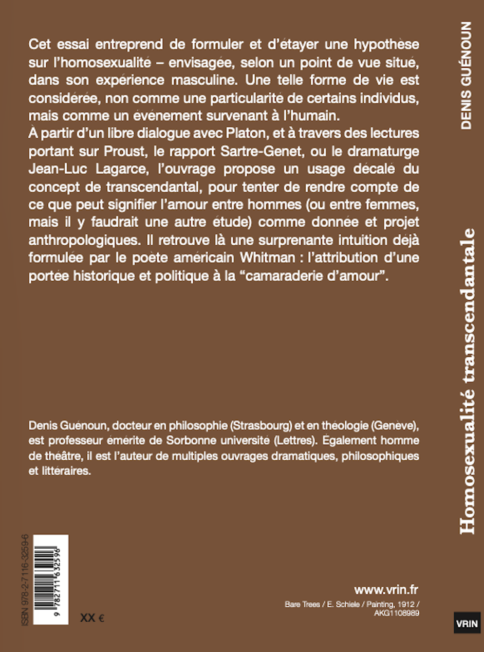 L’essai Homosexualité transcendantale devrait paraître, assez prochainement, aux éditions Vrin. Il est accueilli par la collection « La vie morale », que dirige Sandra Laugier. Voici la présentation qui figurera en quatrième page de couverture :